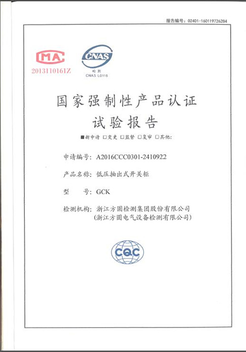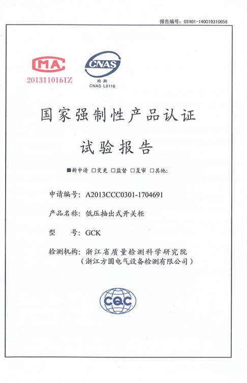 GCK-6300A~4000A 3C證書(shū) ZDGZDW-100AH/DC220V智能直流屏 GCK-4000A~1600A 3C證書(shū) GCK-1600A~400A 3C證書(shū) GCS-6300A~4000A 3C證書(shū) GCS-4000A~1600A 3C證書(shū) GCS-1600A~400A 3C證書(shū) MNS-6300A~4000A 3C證書(shū) MNS-4000A~1600A 3C證書(shū) MNS-1600A~400A 3C證書(shū) GGD-6300A~4000A 3C證書(shū) GGD-4000A~1600A 3C證書(shū) GGD-1600A~400A 3C證書(shū) GGJ 電容柜 3C證書(shū) JP戶外綜合配電箱 3C證書(shū) XL動(dòng)力柜 3C證書(shū) JXF 配電箱 3C證書(shū) ATS雙電源配電箱 3C證書(shū) XJM 計(jì)量配電箱 3C證書(shū) PDX2 計(jì)量配電箱 3C證書(shū) XLW 電纜分支箱 3C證書(shū) PZ30 配電箱 3C證書(shū) ZDYBJD-100-12/0.4 地埋式箱式變電站 ZDYBJD-160-12/0.4 地埋式箱式變電站 ZDYBJD-315-12/0.4 地埋式箱式變電站 ZDYBJD-630-12/0.4 地埋式箱式變電站 KYN-□12/1250-31.5 檢驗(yàn)報(bào)告 KYN28-12/2500-31.5 檢驗(yàn)報(bào)告 KYN□-40.5/2500-31.5 檢驗(yàn)報(bào)告 KYN28-24/2500-31.5 檢驗(yàn)報(bào)告 MNS-1600A~400A 試驗(yàn)報(bào)告 MNS-4000A~1600A 試驗(yàn)報(bào)告 MNS-6300A~4000A 試驗(yàn)報(bào)告 GCS-1600A~400A 試驗(yàn)報(bào)告 GCS-4000A~1600A 試驗(yàn)報(bào)告 GCS-6300A~4000A 試驗(yàn)報(bào)告 GCK-1600A~400A 試驗(yàn)報(bào)告 GCK-4000A~1600A 試驗(yàn)報(bào)告 GCK-6300A~4000A 試驗(yàn)報(bào)告 GGJ 電容柜 試驗(yàn)報(bào)告 ZDGK-12 全封閉充氣柜 檢驗(yàn)報(bào)告 ZGS-12/0.4-1600 檢驗(yàn)報(bào)告 GZDW-100AH/220V 檢驗(yàn)報(bào)告 ZBW□-12/0.4-1250 檢驗(yàn)報(bào)告 HXGN15-12/T125-31.5 檢驗(yàn)報(bào)告 HXGN15-12/630-25 檢驗(yàn)報(bào)告 HXGN15-24/T630-20 檢驗(yàn)報(bào)告 HXGN15-24/T125-31.5 檢驗(yàn)報(bào)告 HXGN15-40.5/T630-20 檢驗(yàn)報(bào)告 HXGN15-40.5/T125-31.5 檢驗(yàn)報(bào)告 HXGN15-40.5/630-25 檢驗(yàn)報(bào)告 DFW□-12/630-25 檢驗(yàn)報(bào)告 智能電容補(bǔ)償柜 檢測(cè)報(bào)告 XGN□-12/125-31.5 檢驗(yàn)報(bào)告 XGN□-12/630-20 檢驗(yàn)報(bào)告 KYN61-40.5/2500-31.5 檢驗(yàn)報(bào)告 FLN□-40.5/630-20 檢驗(yàn)報(bào)告 DFW□-40.5/630-25 檢驗(yàn)報(bào)告 HXGN□-40.5/T125-31.5 檢驗(yàn)報(bào)告 HXGN□-40.5/630-20 檢驗(yàn)報(bào)告 HXGN□-40.5/125-31.5 檢驗(yàn)報(bào)告 HXGN□-40.5/630-20 檢驗(yàn)報(bào)告 XGN□-V-40.5/1250-31.5 檢驗(yàn)報(bào)告 GGD-1600A~400A 試驗(yàn)報(bào)告 GGD-4000A~1600A 試驗(yàn)報(bào)告 GGD-6300A~4000A 試驗(yàn)報(bào)告 XL動(dòng)力柜 試驗(yàn)報(bào)告 JP戶外綜合配電箱 試驗(yàn)報(bào)告 PZ30配電箱 試驗(yàn)報(bào)告 JXF配電箱 試驗(yàn)報(bào)告 ZD-APF-400V-300A/4L 檢驗(yàn)報(bào)告 VEZ-12/1250-31.5 檢驗(yàn)報(bào)告 ZN85-40.5/1250-31.5 檢驗(yàn)報(bào)告 XJM計(jì)量配電箱 試驗(yàn)報(bào)告 ATS雙電源配電箱 試驗(yàn)報(bào)告 XLW電纜分支箱 試驗(yàn)報(bào)告