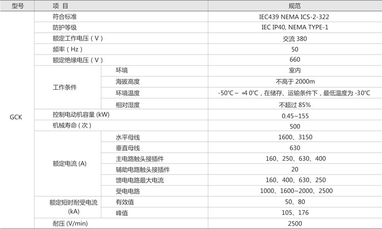 GCK低壓抽出式開關(guān)柜,主要是由一些組合式電動(dòng)機(jī)控制單元,和其它功能單元組合而成。這些單元以上下重疊的方式安裝在封閉的金屬柜體內(nèi)。用設(shè)置在柜體上方的水平母線,將每個(gè)柜體聯(lián)結(jié)在一起,同一柜體的功能單元?jiǎng)t并聯(lián)在垂直母線上。柜體共分水平母線區(qū)、垂直母線區(qū)、電纜區(qū)和設(shè)備安裝區(qū)等四個(gè)互相隔離區(qū)域,功能單元分別安裝在各自的小室內(nèi),當(dāng)任何一個(gè)功能單元發(fā)生事故時(shí),均不影響其它單元,防止事故擴(kuò)大。本產(chǎn)品符合JB/T9661-1999標(biāo)準(zhǔn)。該產(chǎn)品采用IEC114規(guī)定的IP40防護(hù)等級(jí),當(dāng)所有的門和護(hù)板關(guān)閉時(shí),或門開啟時(shí)以及功能單元外于移出位置時(shí),均能達(dá)到相應(yīng)的防護(hù)等級(jí),這樣可確保人身安全。該產(chǎn)品設(shè)置有完善可靠的接地系統(tǒng)和保護(hù)電路,所有功能單元均能按規(guī)定的性能要求,分?jǐn)喽搪冯娏鳎M(jìn)線單元具有三段保護(hù)特性。因此,可以保證供電的可靠性,和設(shè)備與系統(tǒng)的安全。所有功能單元,均可通過(guò)接口件與PC線板(可編程序控制器)或微處理機(jī)連結(jié),作為自動(dòng)控制系統(tǒng)的執(zhí)行單元,根據(jù)用戶需要還可以提供其它內(nèi)容的功能單元和功能組合,該產(chǎn)品適用于交流380V,頻率50Hz的電路中。