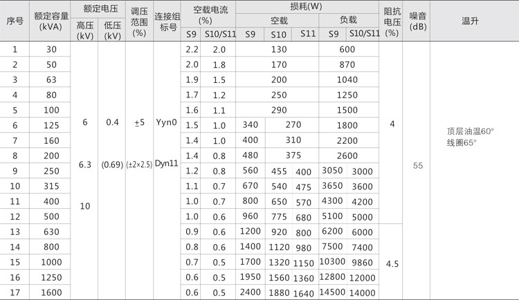 10KV預(yù)裝式變壓站用S9、S10、S11系列油浸式變壓器性能水平